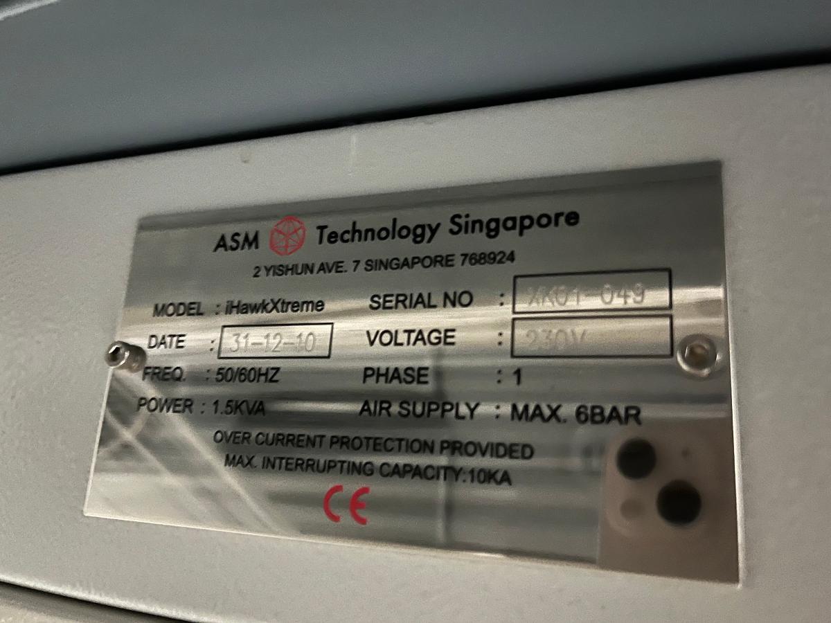 Item ID: 262537 1 Offered at Best Price WB_ASM IHAWK XTREME_L4WB06 ... other image Unit Price Unstated Number of Units 1 Manufacturer ASM Technology Singa Model iHawk Xtreme Description WB_ASM IHAWK XTREME_L4WB06 Condition Good Year of Manufacture 2011 Serial Number(s)XK01-049 Shipping & Handling:All items are sold on condition `as is and where is`. Ex work from current location excluding de-installation, de-hook up, discharge, packaging, crating and delivery. We are not responsible for any damage incurred during shipment. Payment:100% downpayment Make OFFERSend QUESTIONS